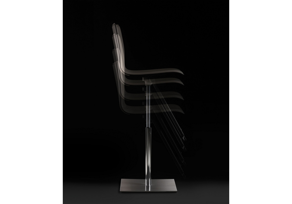 Toto designed by Paolo Cattelan for Cattelan Italia is a swivel stool with adjustable height. Upholstery in saddle leather. Round or square base plate made of satin stainless steel and column, footrest and gas piston in chromed steel or with base plate, column, and footrest in black embossed lacquered steel and gas piston in chromed steel.