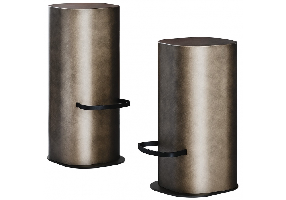 Pancho designed by Paolo Cattelan for Cattelan Italia is a stool available in two sizes. Structure in Brushed Bronze or Brushed Grey steel and footrests in black embossed lacquered steel.