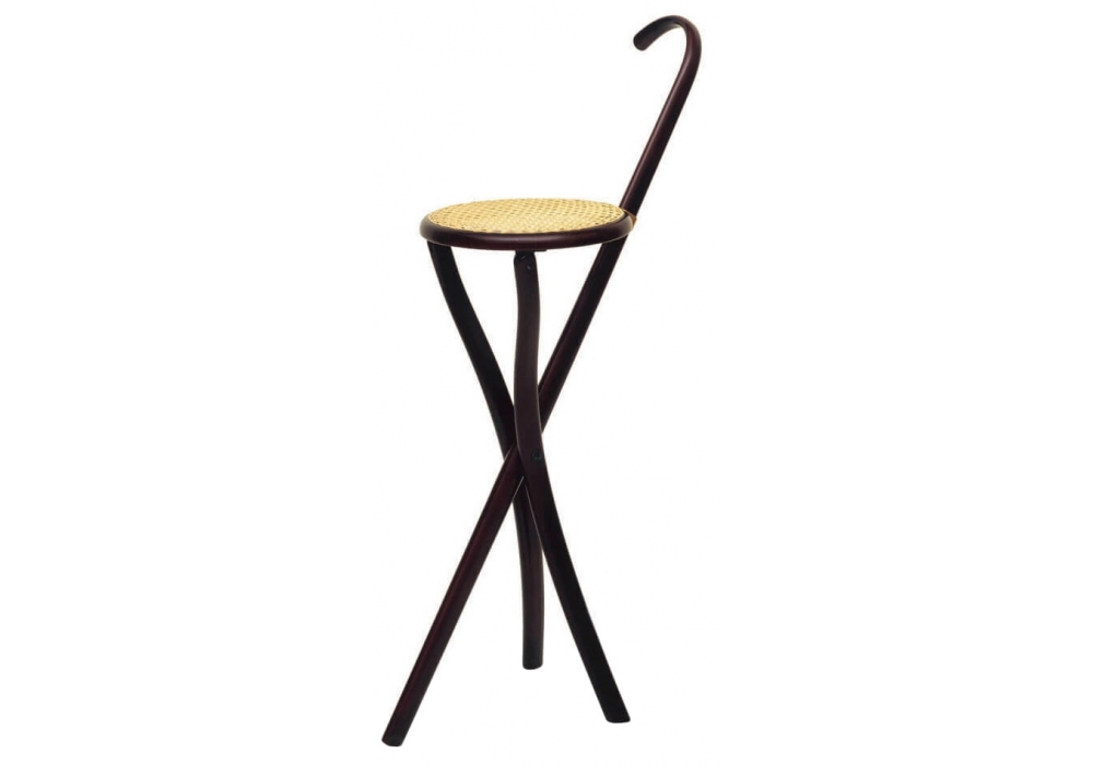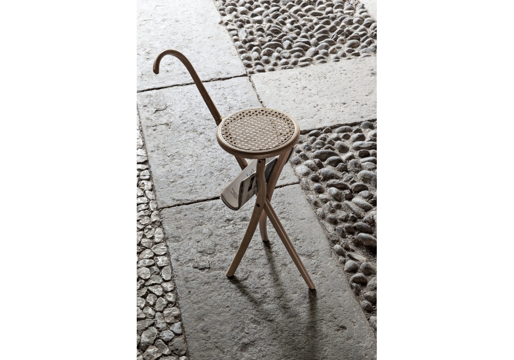 Stocksessel designed by Gebrüder Thonet Vienna is a combined folding stool and walking stick. Structure in beech, available in different finishes. Vienna straw seat.