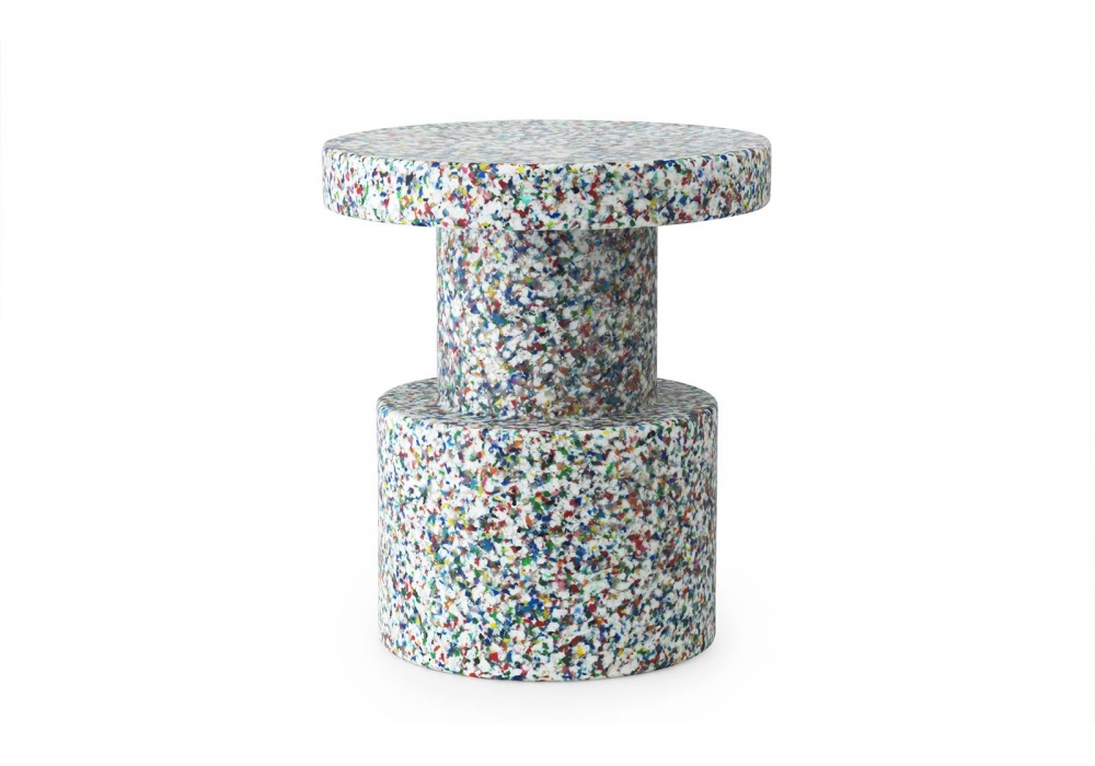 Bit, designed by Simon Legald for Normann Copenhagen is a stool, entirely structured in recycled plastic material, with a cylindrical shape in four different finishes; white, black, multi white or multi black.
