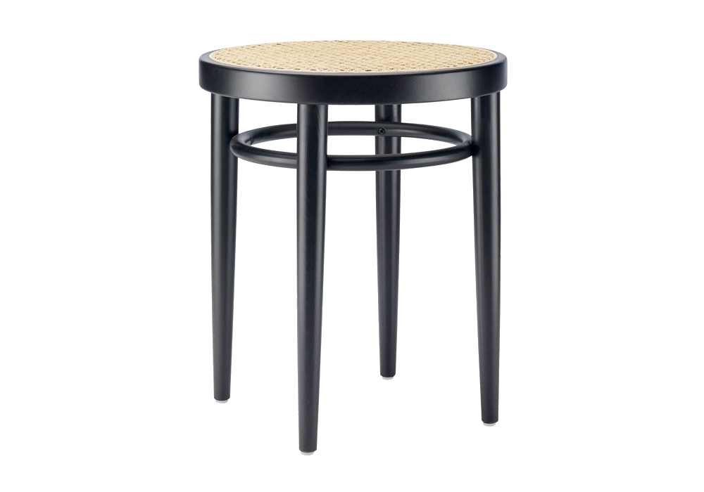 214 RH designed by Gebrüder Thonet for Thonet is a stool in curved wood and plastic feet. Seat in rattan cane. Structure in beech, available in different finishes.