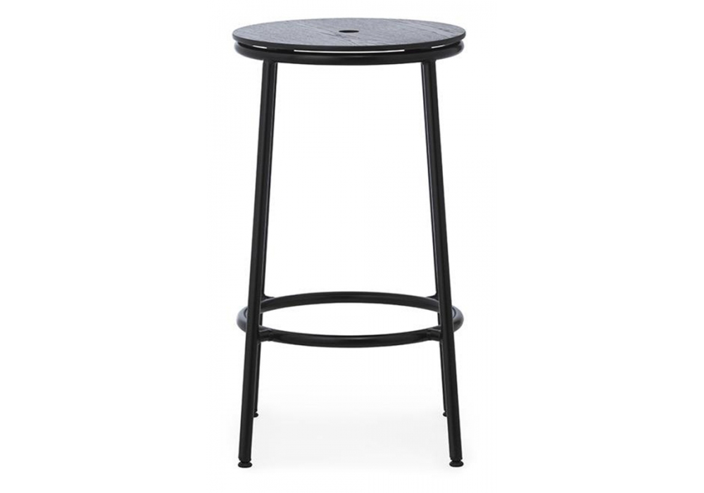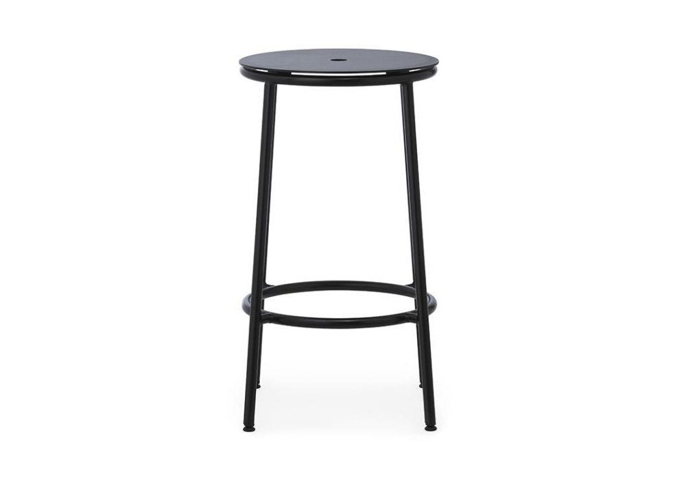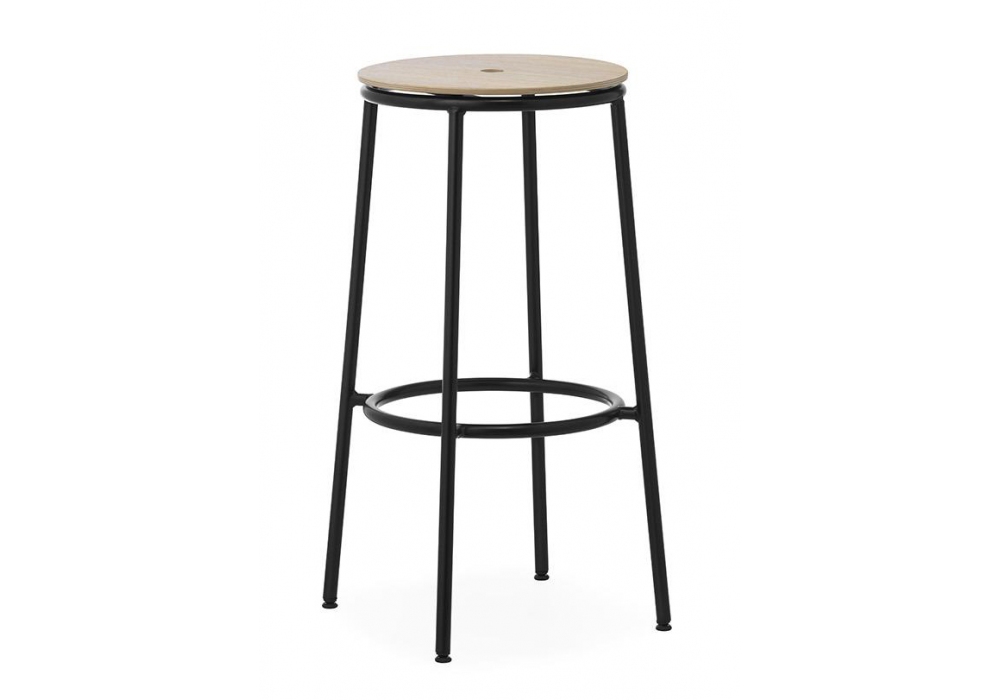 Circa, designed by Simon Legald for Normann Copenhagen is a stool, with legs and supporting structure in steel, and with seat in wood or aluminum. Circa is available in different finishes and in different tee sizes.