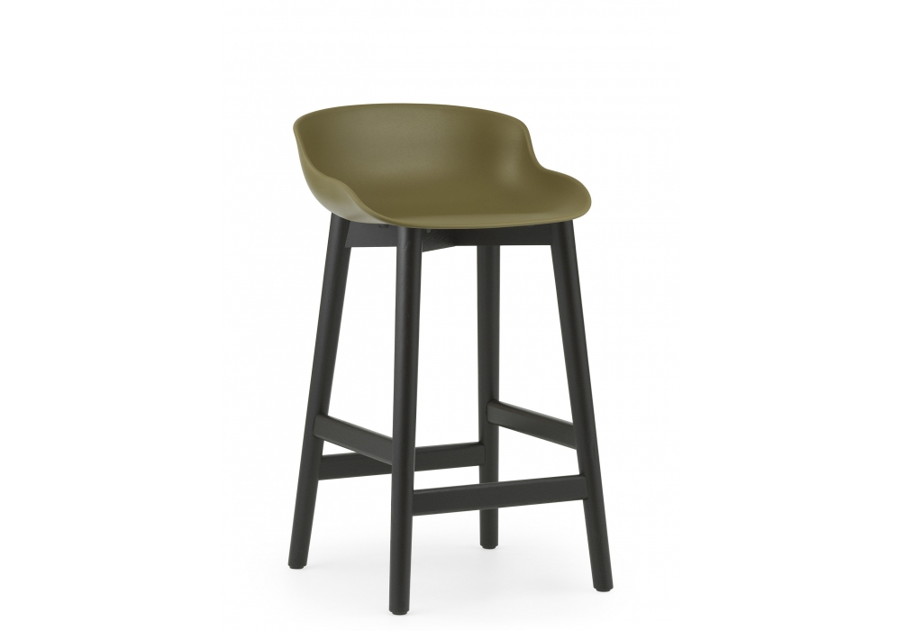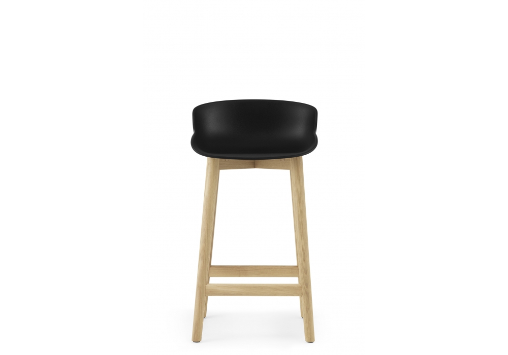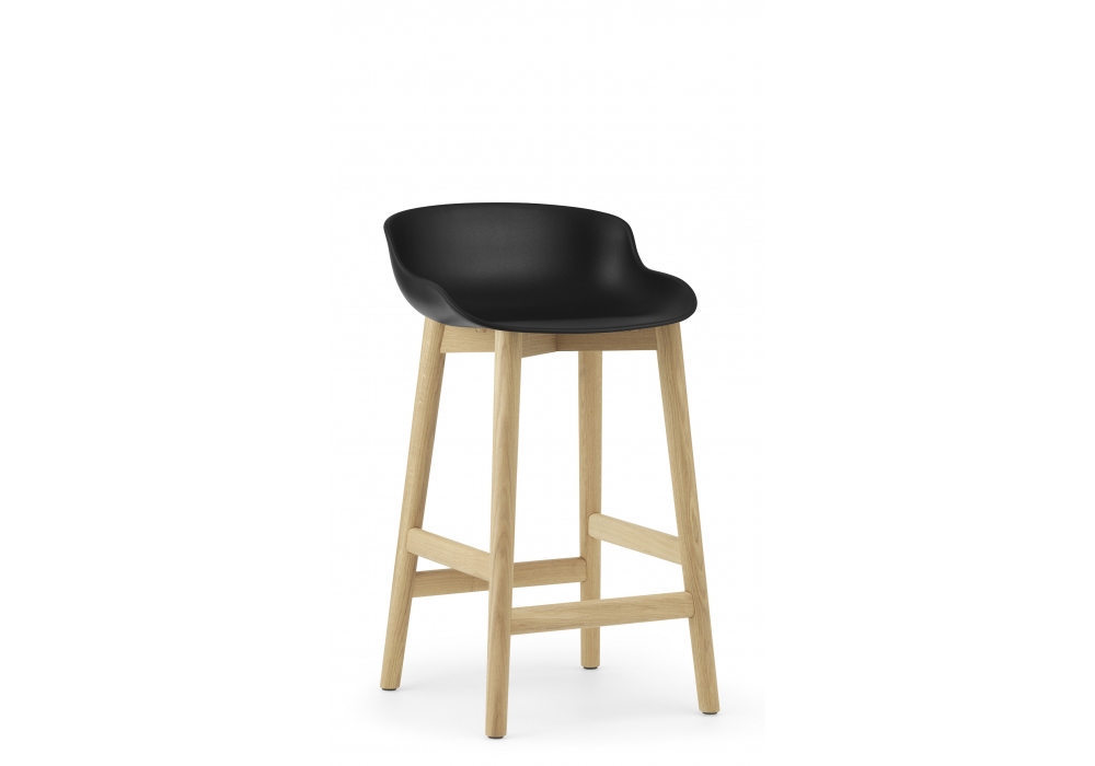 Hyg Wood, designed by Simon Legald for Normann Copenhagen is a stool, with legs and supporting structure in natural or black oak wood, and with seat in plastic material. Hyg is available in two sizes and different finishes.