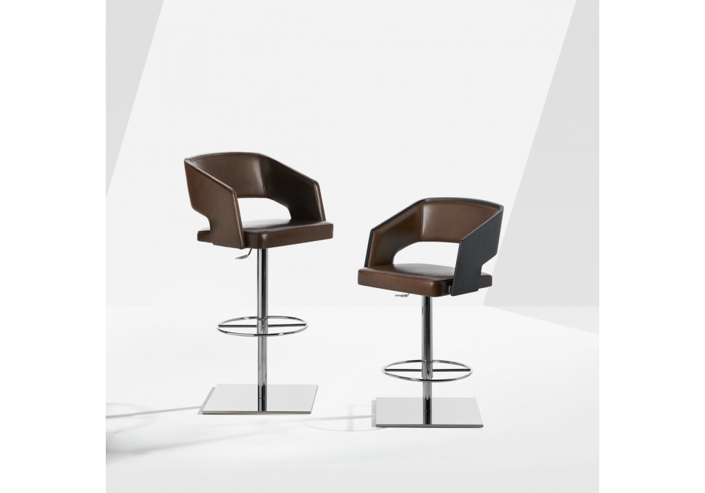 Jolly signed by Wolfgang C.R. Mezger for Potocco is an extendable stool with gas piston structured in metal in different colors. The metal base can be chosen in a quadrangular or circular shape. Seat and back are padded and covered in various types of fabric, leather or eco-leather.