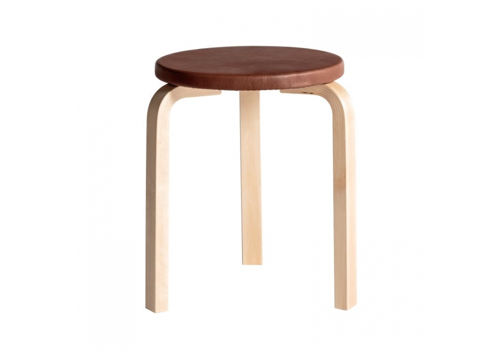 60 Stool designed by Alvar Aalto for Artek is a stool with seat upholstered in fabric or leather. Legs in lacquered or tinted birch wood. Available in different finishes.