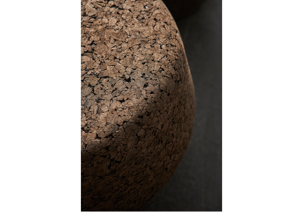 Corker designed by Herzog & de Meuron for ClassiCon is a stool or side table made of dark cork with impregnation, milled from a block. Available in different models.
