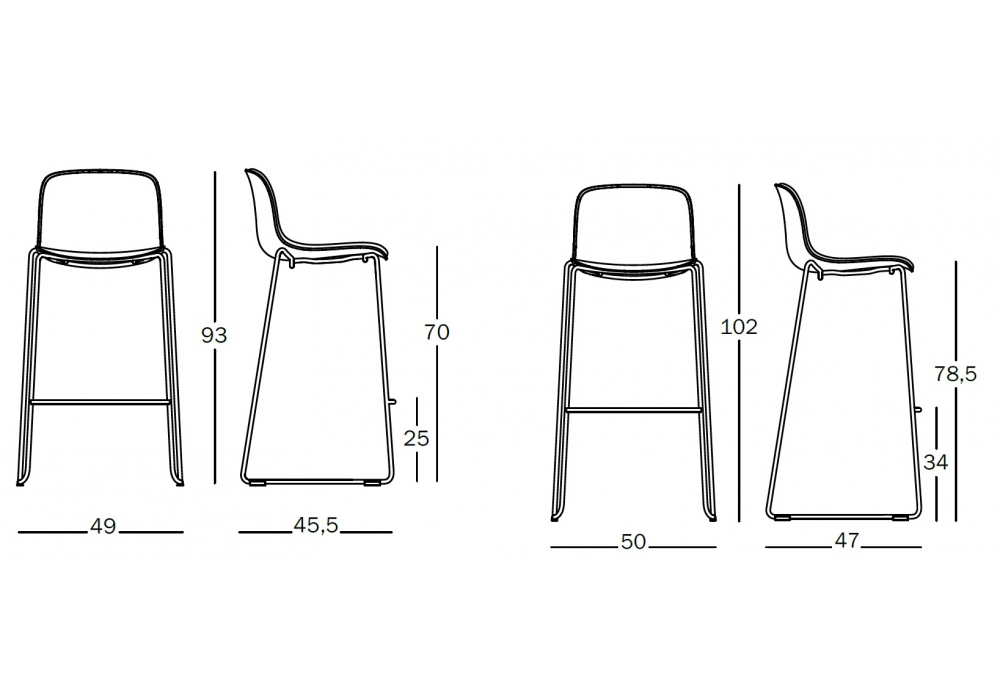 | Dimensions | 49 x 45.5 x H 93 cm; 50 x 47 x H 102 cm. |