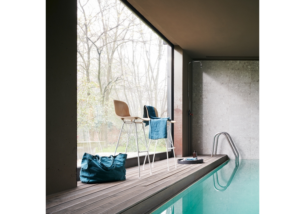 Troy Wireframe Beech designed by Marcel Wanders for Magis is a stool with structure in gilded, coppered or painted steel and seat in beech plywood. Available in different finishes and sizes.
