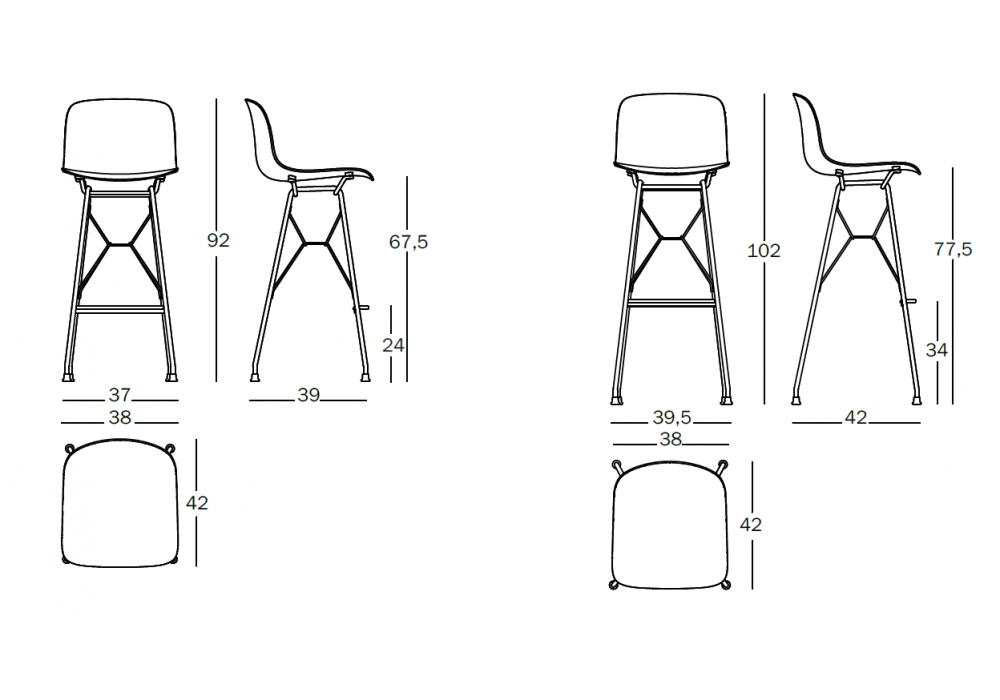 | Dimensions | 38 x 39 x H 92 cm. 39.5 x 42 x H 102 cm. |