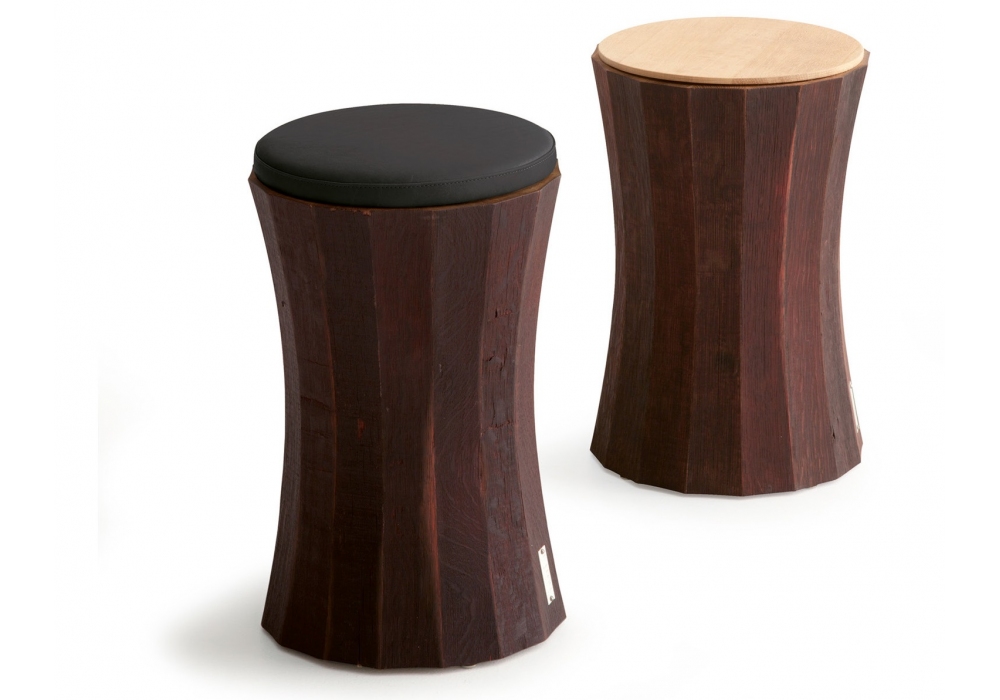 Inverso designed by Karim Rashid for Riva 1920 is a stool whose shape is characterized by the radial combination of the slats, coming from the Barriques, and by the typical burgundy color. Padded seat upholstered in leather.