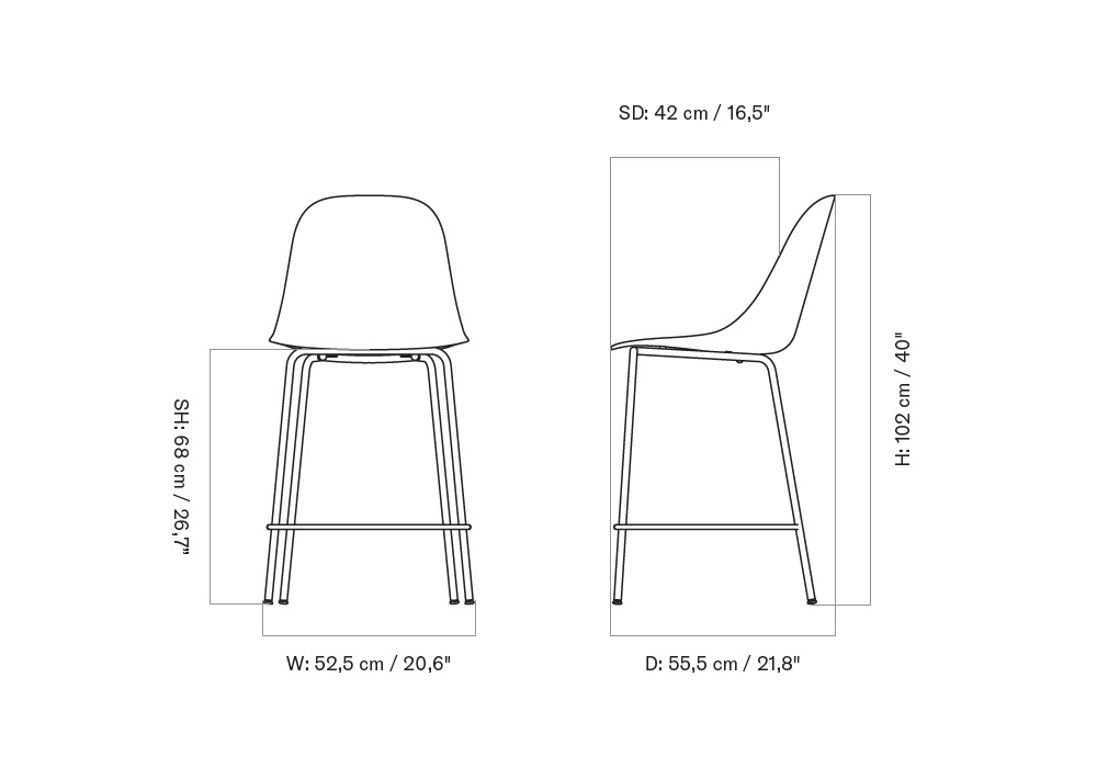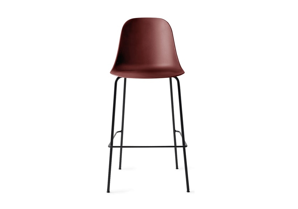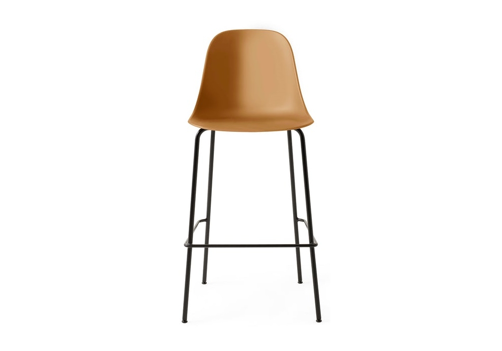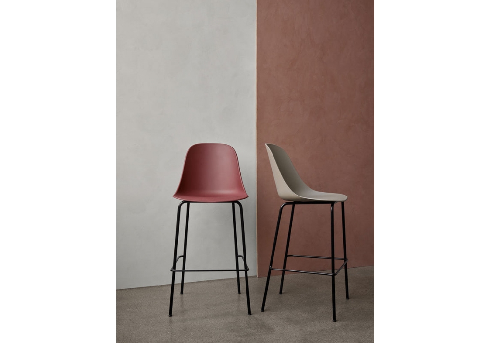 Harbor Side Counter designed by Norm Architects for Audo Copenhagen is a stool with polypropylene shell and black powder coated steel legs. Available in different finishes and sizes.