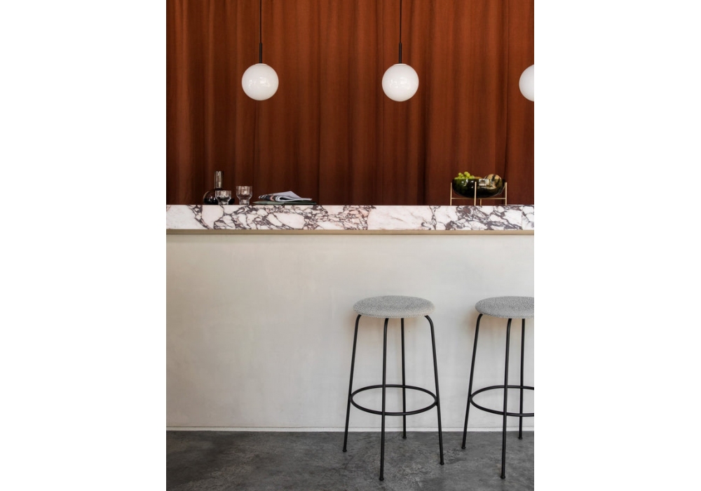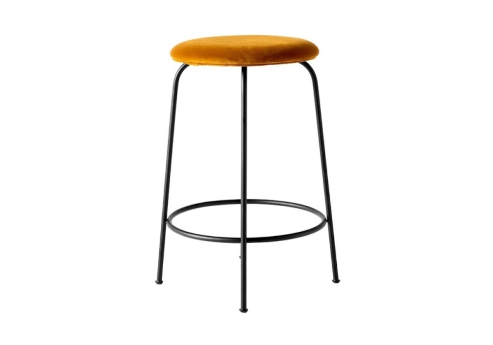 Afteroom designed by Afteroom Studio for Audo Copenhagen is a stool made of black powder coated tubular steel, padded seat with fabric or leather covering.