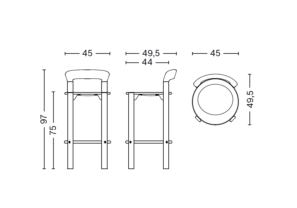 Rey designed by Bruno Rey & Hay for Hay is a barstool made in painted beech wood and footrest in chromed steel. Available in different finishes.