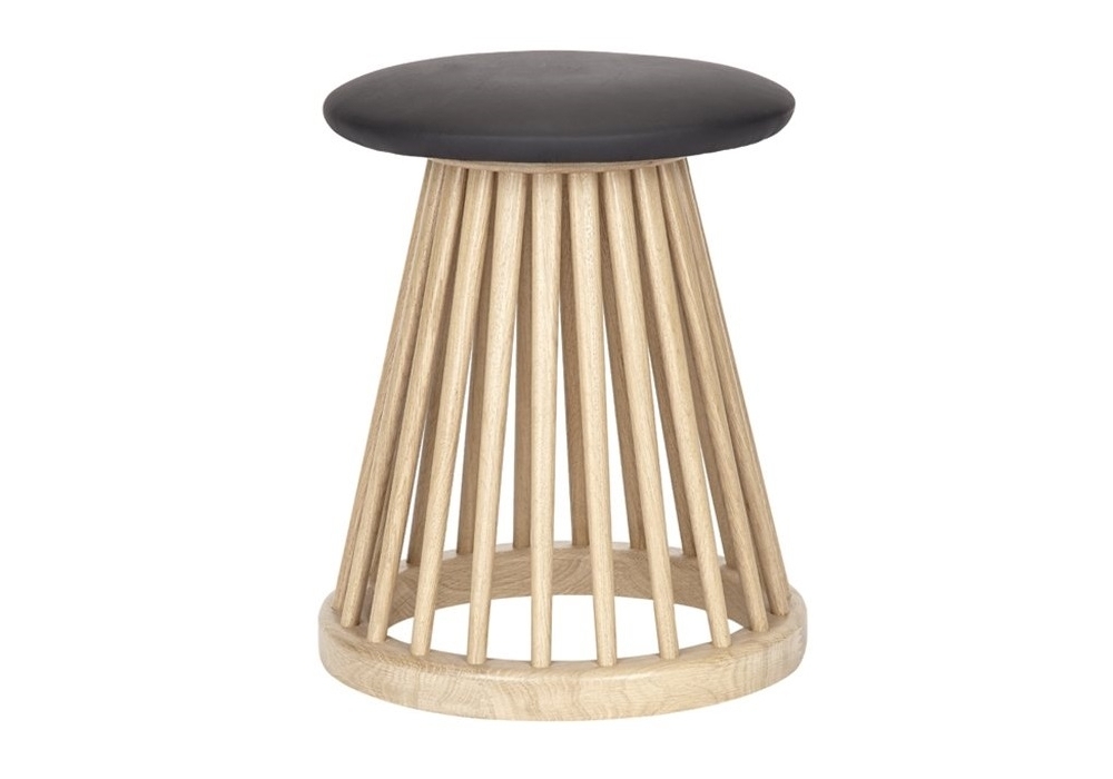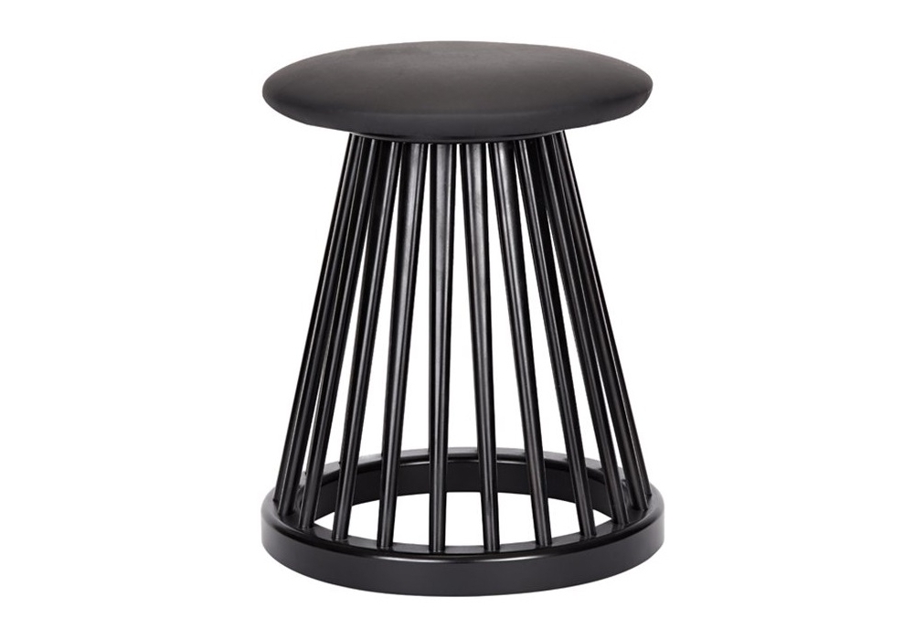 Fan Stool designed by Tom Dixon is a stool with cushion covered in black leather and structure available in different finishes.