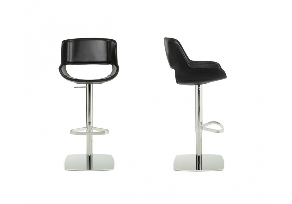 Amaranta designed by Cappelletti & Pozzoli for Enrico Pellizzoni is a stool with shell in rigid polyurethane, swivel base in chromed steel, adjustable height. Upholstery available in different materials and colours.