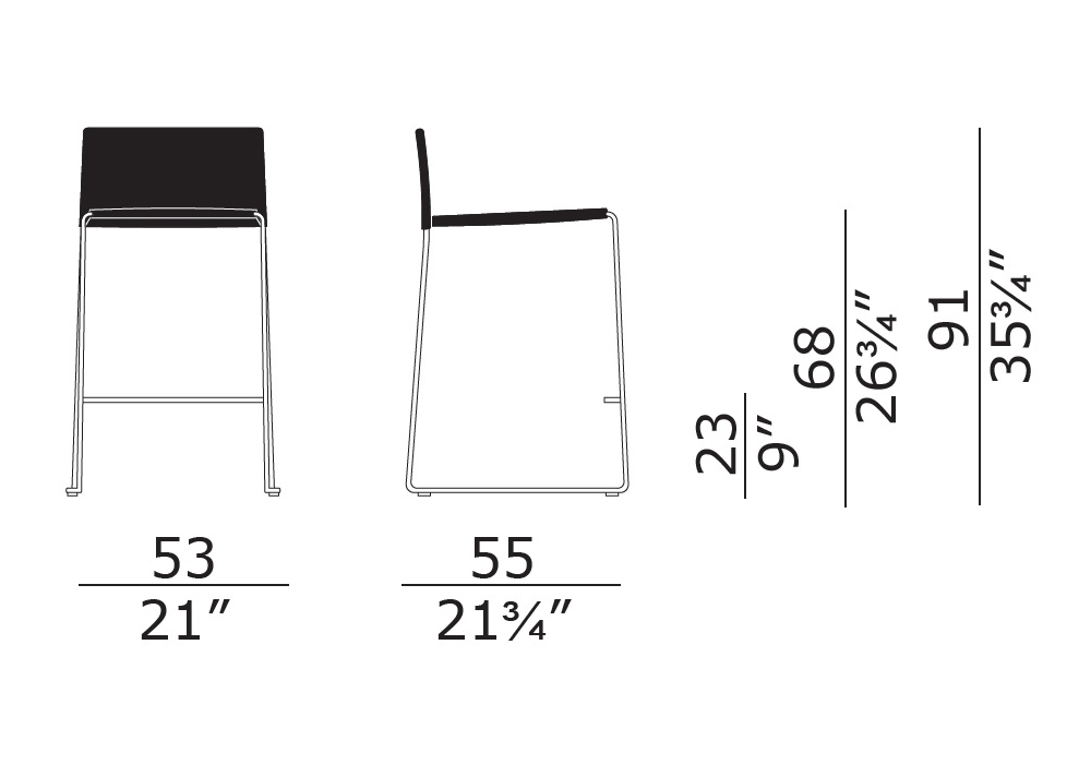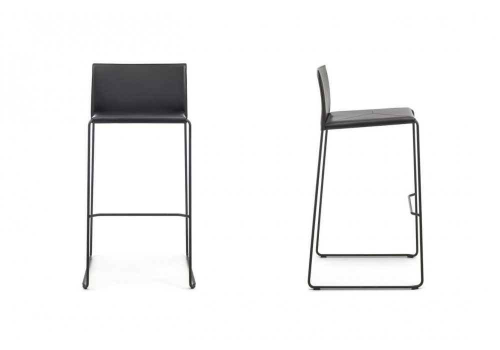 Bizzy designed by Franco Bizzozero for Enrico Pellizzoni is a stool with steel rod structure, upholstered seat and back. Structure and covering available in different finishes. Underseat in sheet metal covered in black technical fabric. The Bizzy stool is also available in different sizes.