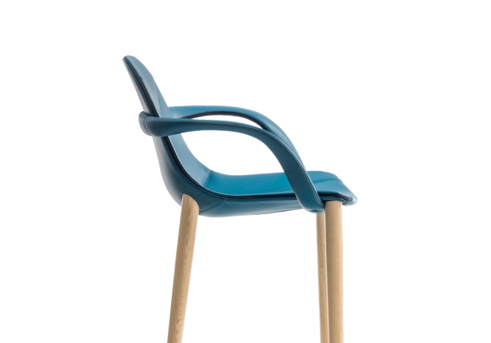 Couture designed by Stefano Bigi for Enrico Pellizzoni is a stool with upholstered aluminum shell, conical wooden legs and footrest in chromed rod. Available in different finishes.