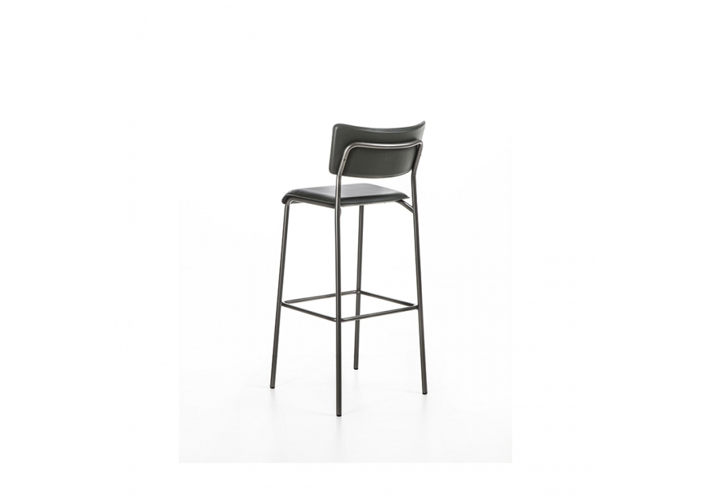 Isotta designed by Studio Nove.3 for Enrico Pellizzoni is a stool with tubular metal structure. Backrest and seat in wood covered in leather. Available in different finishes.