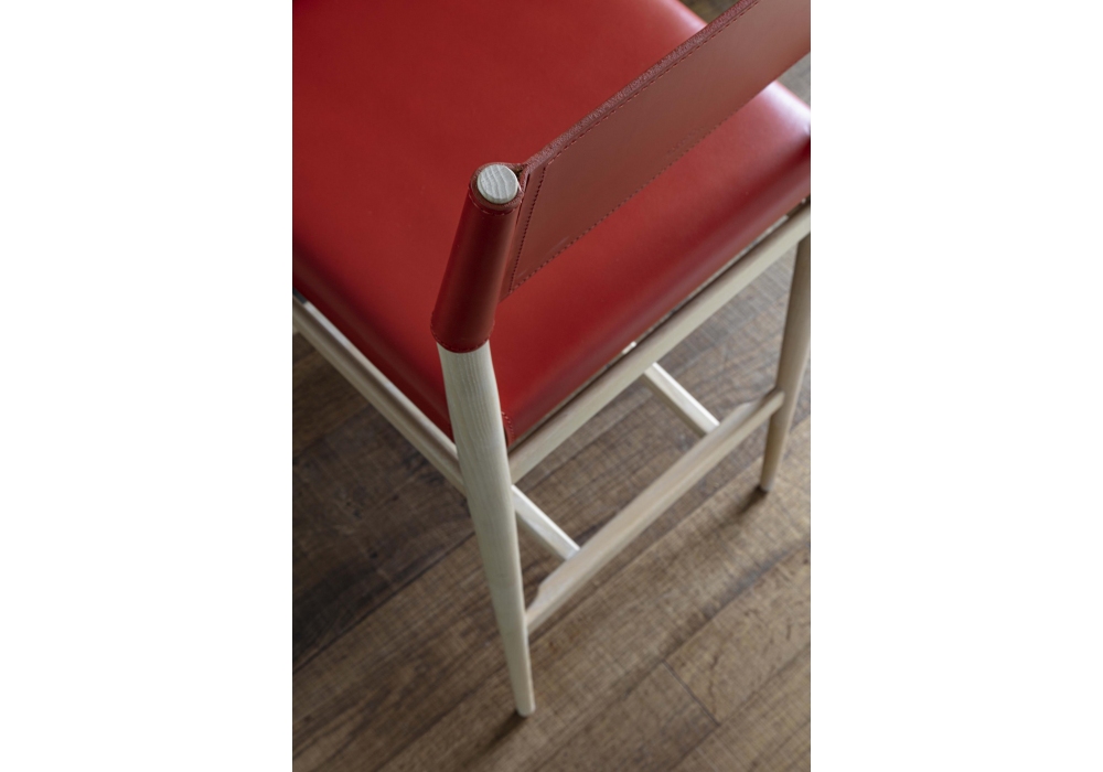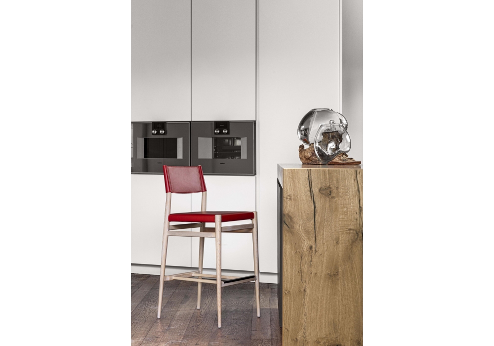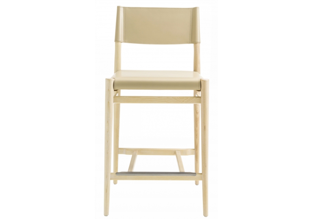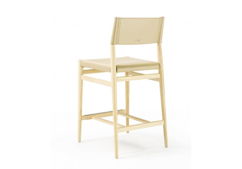 Ledermann Light designed by Tom Kelley for Enrico Pellizzoni is a stool with wooden legs, seat and back covered in leather. Available in different finishes and sizes.