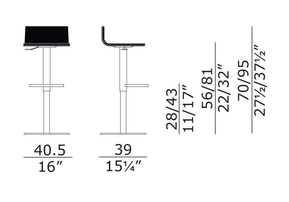 | Dimensions | • 40,5 x 39 x H 70/95 cm |