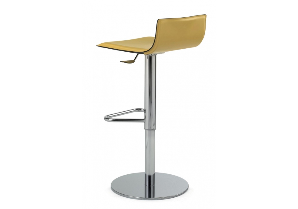 Micad designed by Michele Cadore for Enrico Pellizzoni is a swivel stool with beech plywood shell and leather upholstery, available in different finishes. Adjustable height.