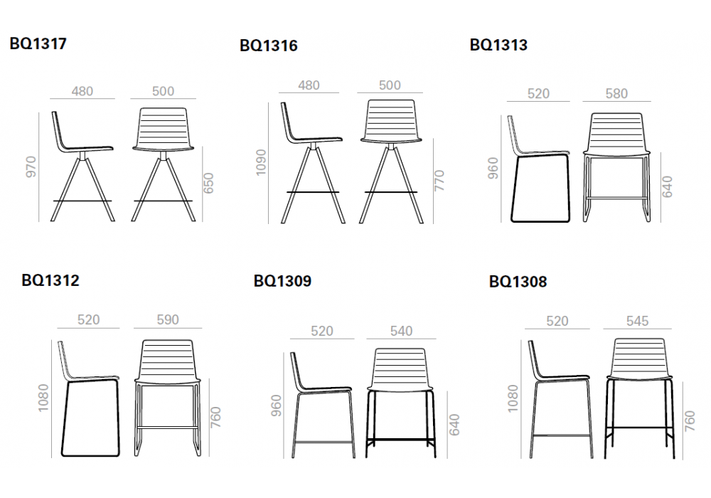 | Dimensions | - 54.5 x 52 x H 108 cm; - 54 x 52 x H 96 cm; - 59 x 52 x H 108 cm; - 58 x 52 x H 96 cm; - 50 x 48 x H 109 cm; - 50 x 48 x H 97 cm. |