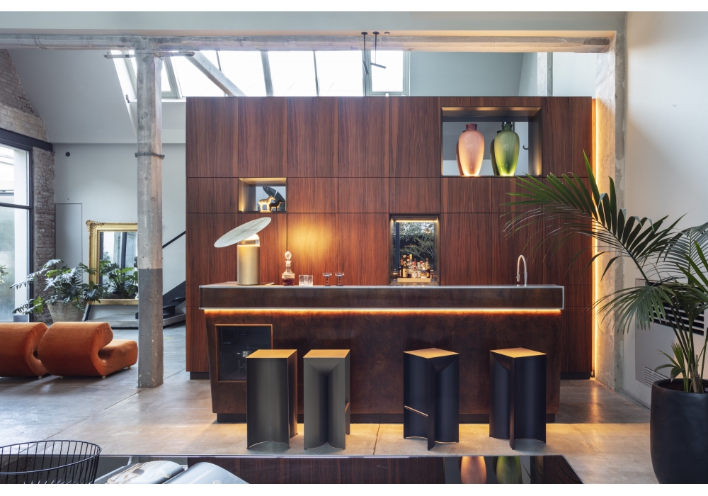 Uccio designed by Idelfonso Colombo for Mogg is a stool made of aluminum in the finishes, painted matt black or dark bronze. Available in 2 dimensions.