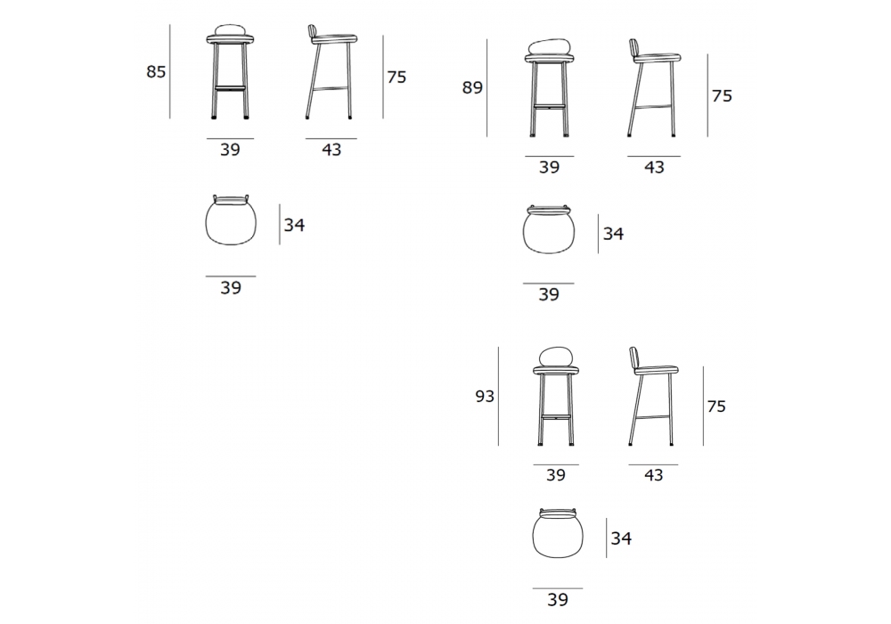 | Dimensions | 39 x 43 x H 85 cm; 39 x 43 x H 89 cm; 39 x 43 x H 93 cm. |