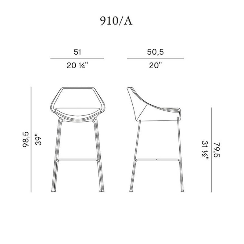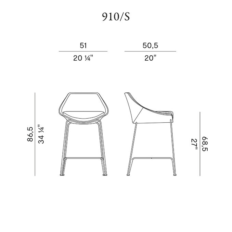 Cut designed by Stephan Veit for Potocco is a stool with tubular metal structure painted in different finishes. Seat and backrest are padded with fireproof polyurethane foam and covered in various types of fabric.