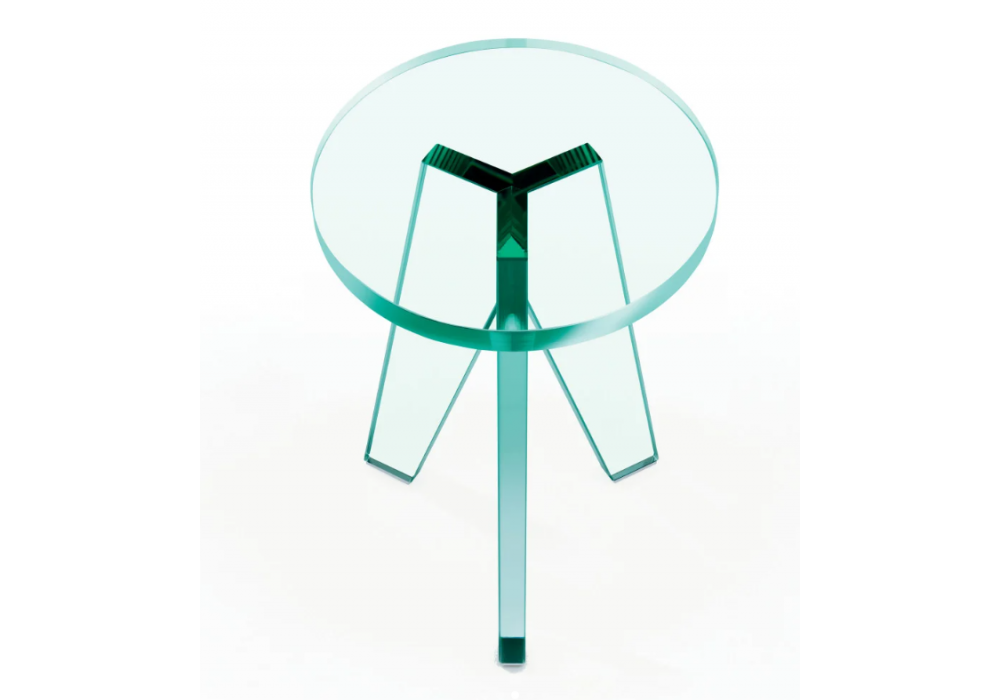 Crystal Stool designed by Philippe Starck for Glas Italia is a stool entirely made of transparent tempered glass sheets with a thickness of 24 mm. The feet are in mirror-polished stainless steel, enriching the object even further.