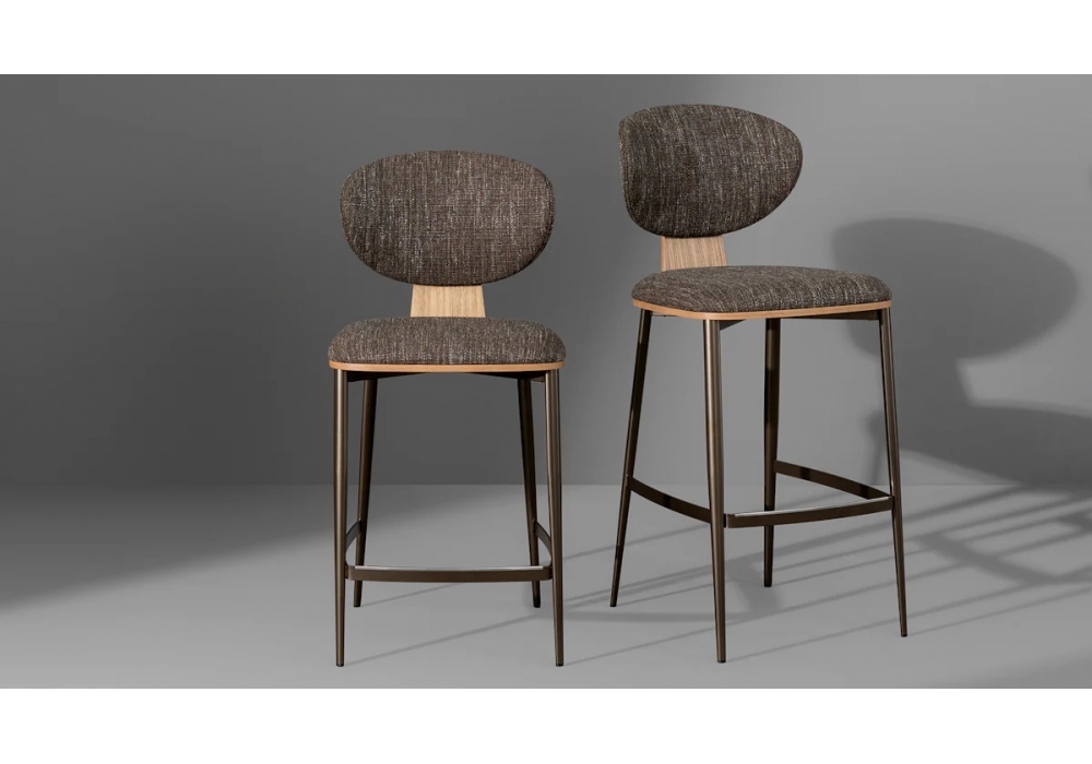 Olos Too designed by Mauro Lipparini for Bonaldo is a stool with wooden structure, painted metal base, padded seat and backrest with fabric or leather covering. Available in different finishes and sizes.