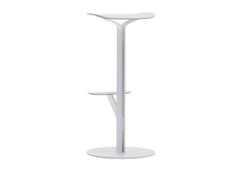 Duetto designed by 967Arch for MDF Italia is a stool with a supporting structure made of steel and powder coated, seat and footrest made of glass-filled polypropylene in black and white, matching the structure. Available in two heights and in the swivel or fixed version.
