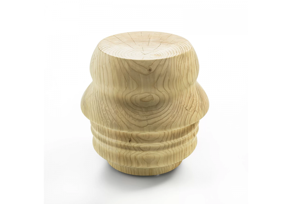 Ego designed by Karim Rashid for Riva 1920 is a stool in solid scented cedar wood worked from a single block.