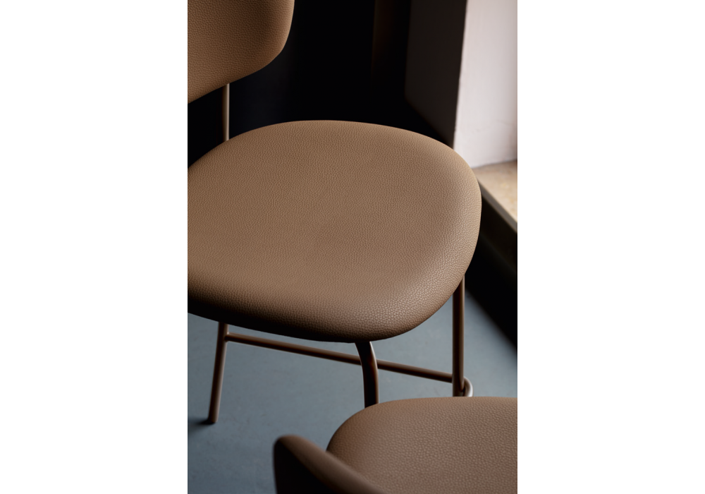 Desy designed by Connubia is a stool with a painted metal frame, seat and backrest in fabric or leather. Available in different finishes.