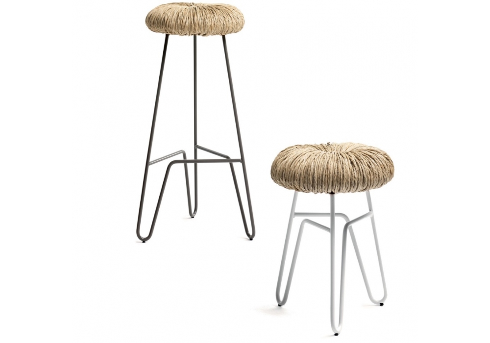 Donut designed by Alessandra Baldereschi for Mogg is a stool made with padded seat in straw and structure in painted metal. Available in different finishes and dimensions.