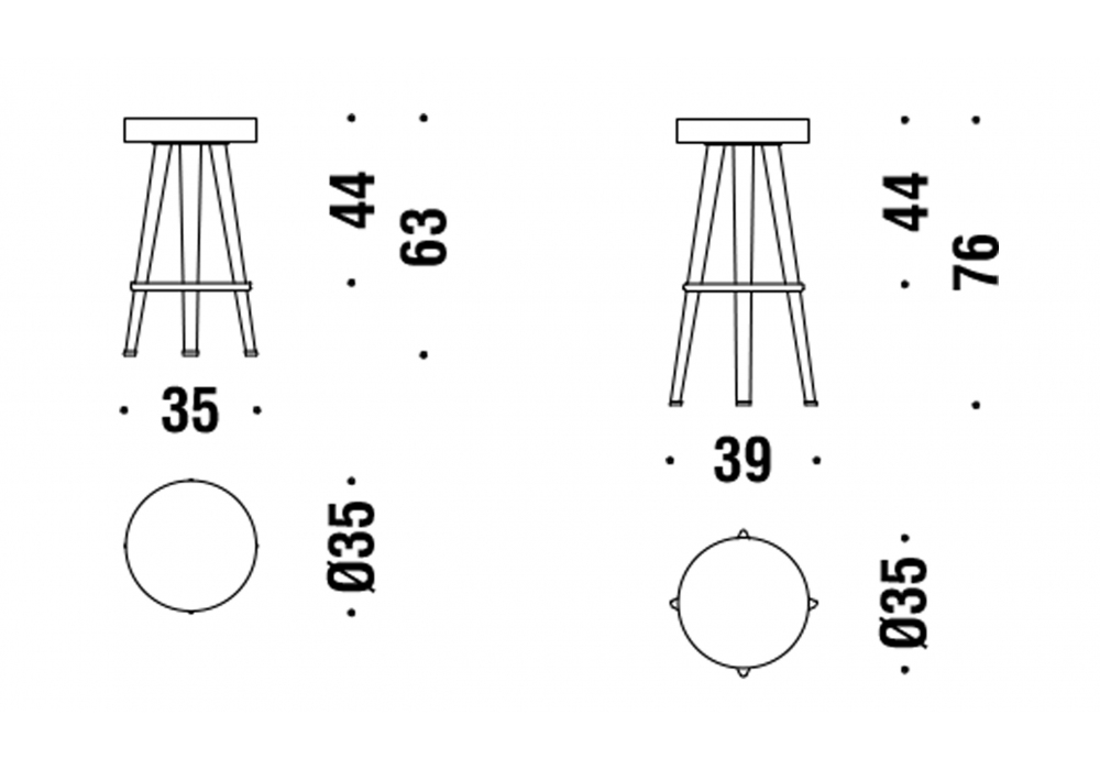 Bar Stud is a stools collection designed by Diesel with Moroso. Low e high Stool: seat in wood upholstered with polyurethane foam and black leather with or without studs. Base in steel. Glides in polypropylene.