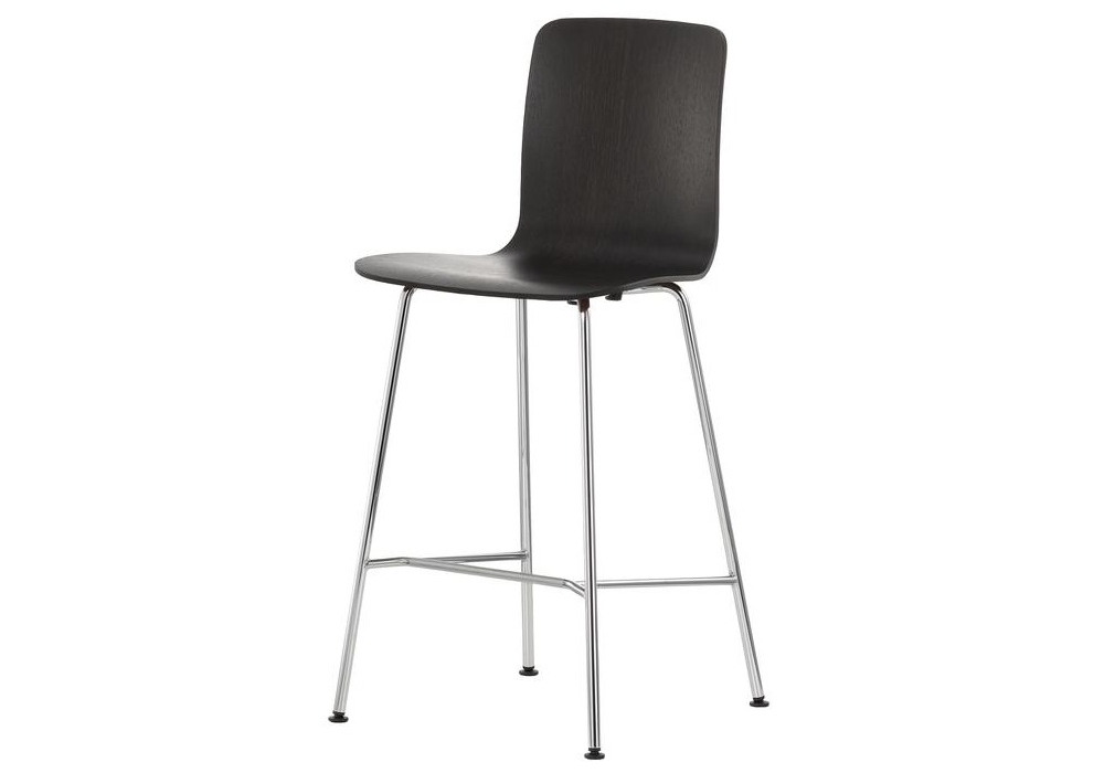 HAL Ply Stool High: Seat shell: plywood. Base in chrome-plated tubular steel, with anti-skid footrest, non-stacking.
