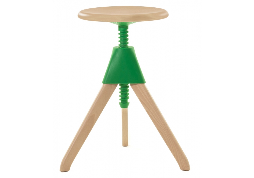 The Wild Bunch - Tom & Jerry designed by Konstantin Grcic for Magis is a swivel and height-adjustable stool. Seat and legs in solid natural or stained beech, joint and screw in polypropylene with glass fiber added. Available in different finishes and two sizes.