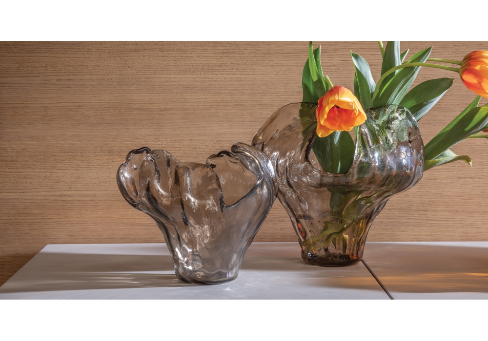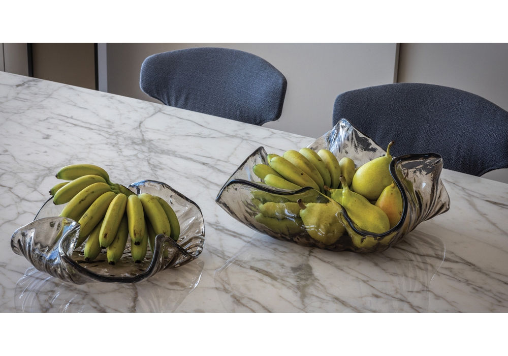 Gli Oggetti - Water Illusion designed by Assia Karaguiozova for Poltrona Frau are unique pieces, containers like glass sculptures for decorating. Vases and bowls with the same material language that interact with the environments in which they are placed, diversifying in function.