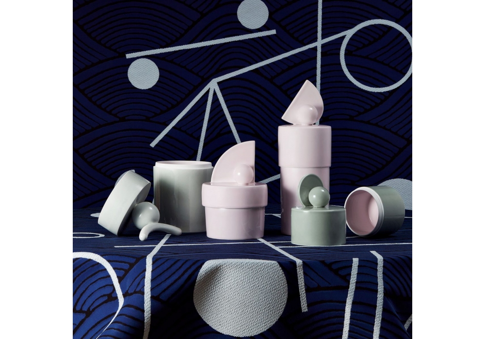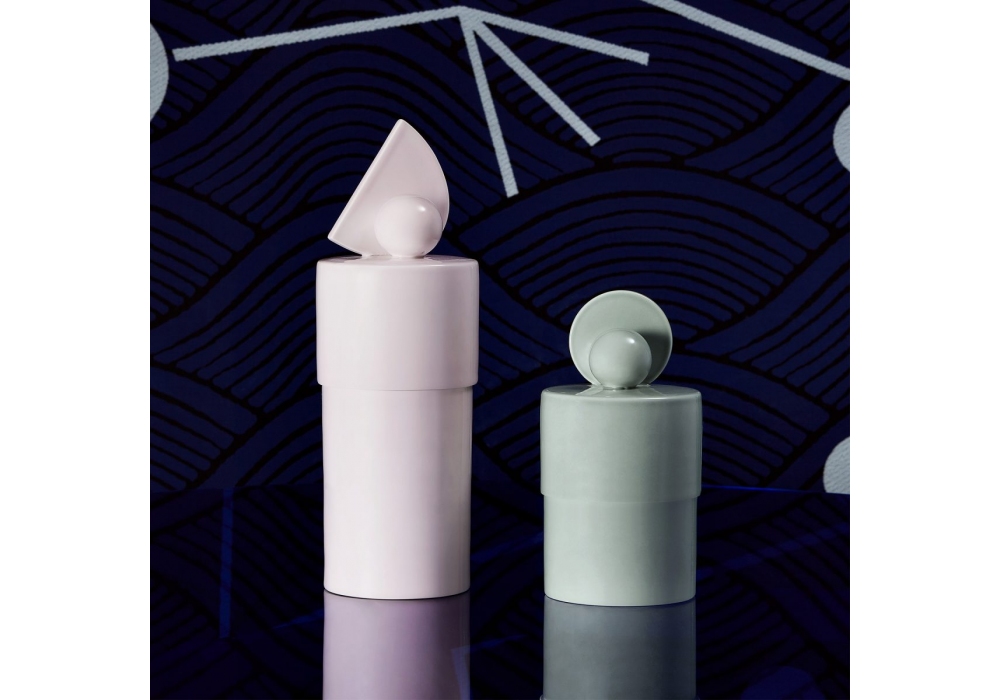 Mademoiselle Georges N ° 1 designed by Thomas Dariel for Maison Dada is a cylindrical decorative box structured in light pink painted ceramic.
