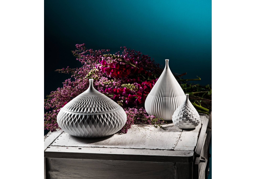 Plissé designed by Diana Borges for Vista Alegre is a box made of porcelain and crystal. Available in different dimensions.