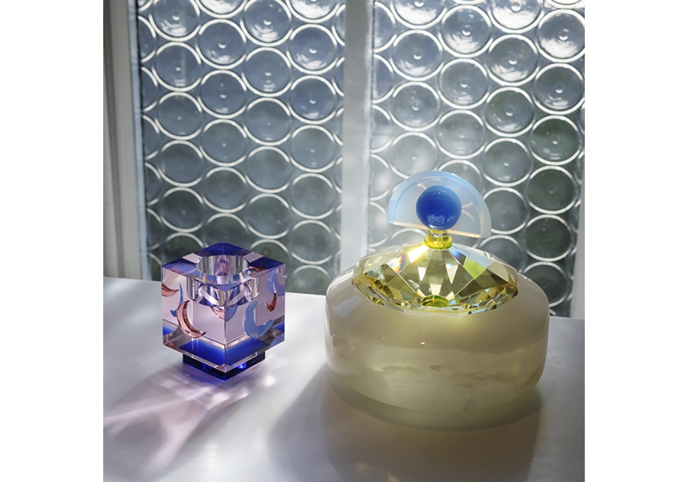 Blueberry produced and designed by Reflections Copenhagen is a structured jewelery box with a combination of crystal and hand-crafted white onyx.