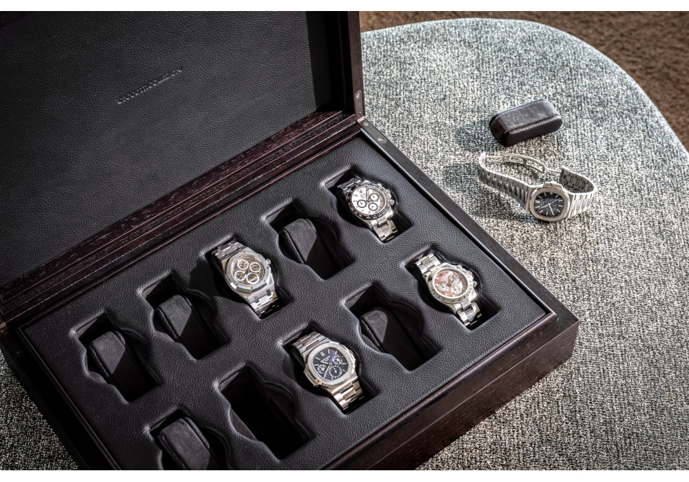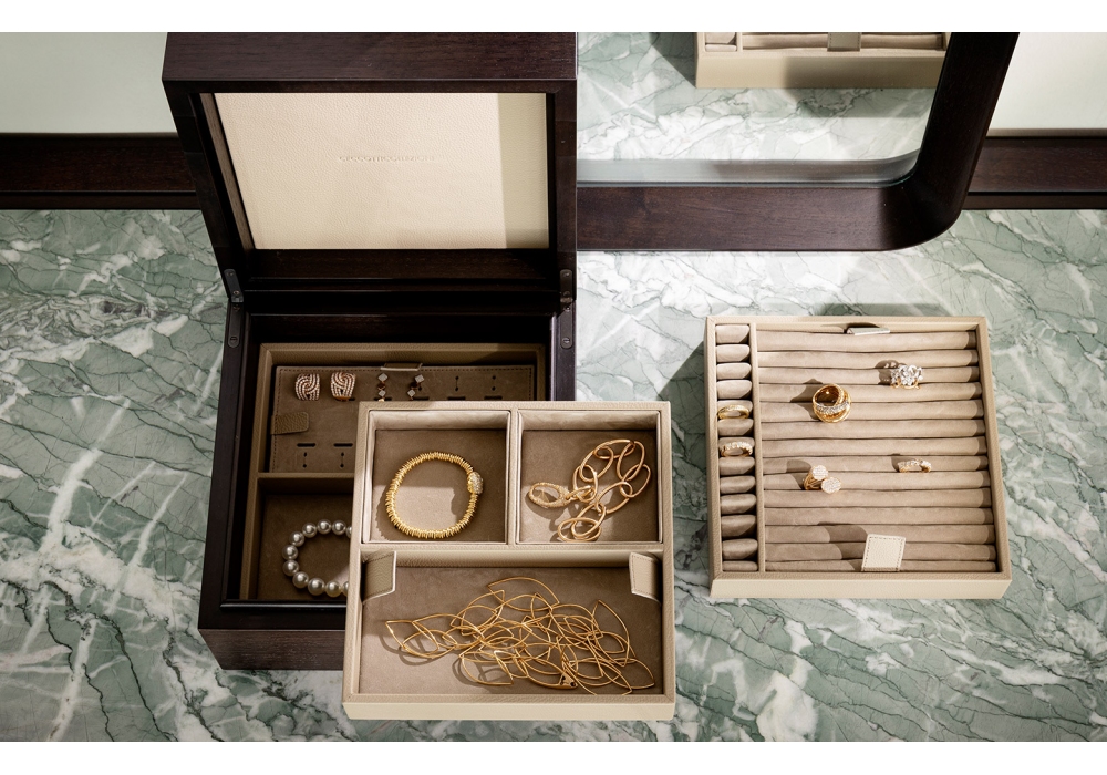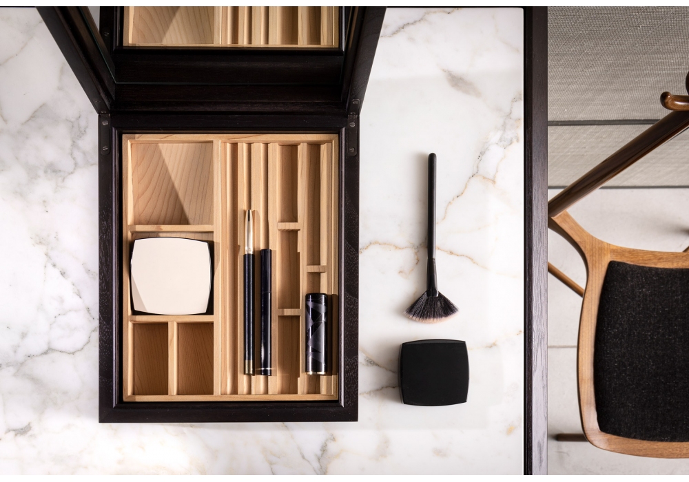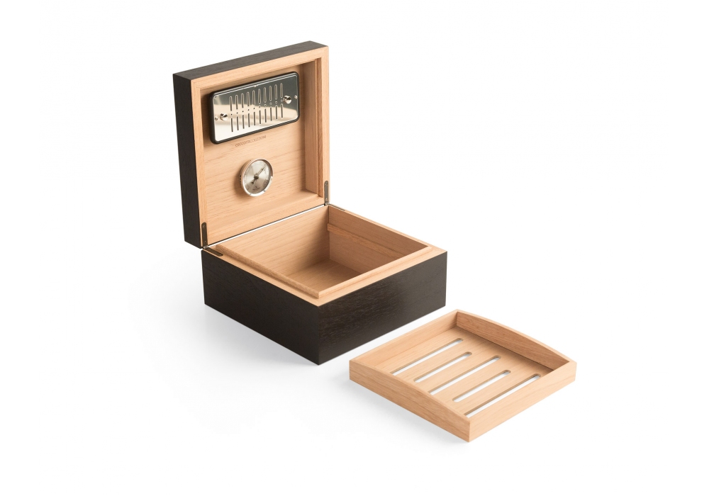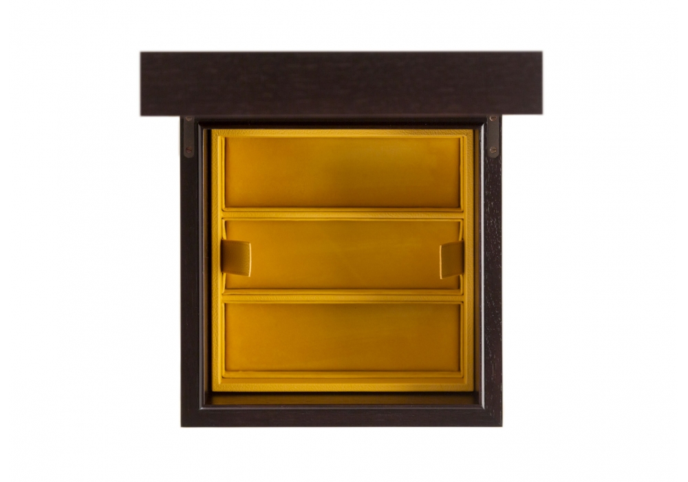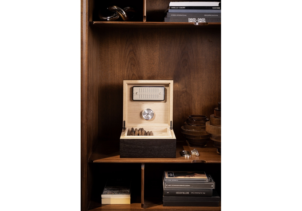 Box designed by design Studio Ceccotti Collezioni is a boxes collection made of plywood veneered American walnut with internal parts in Poltrona Frau leather or cedar of Lebanon. The collection consist in: make-up box; humidor box; shoes set box; eyewear box; jewelry box; pens box; watches box.