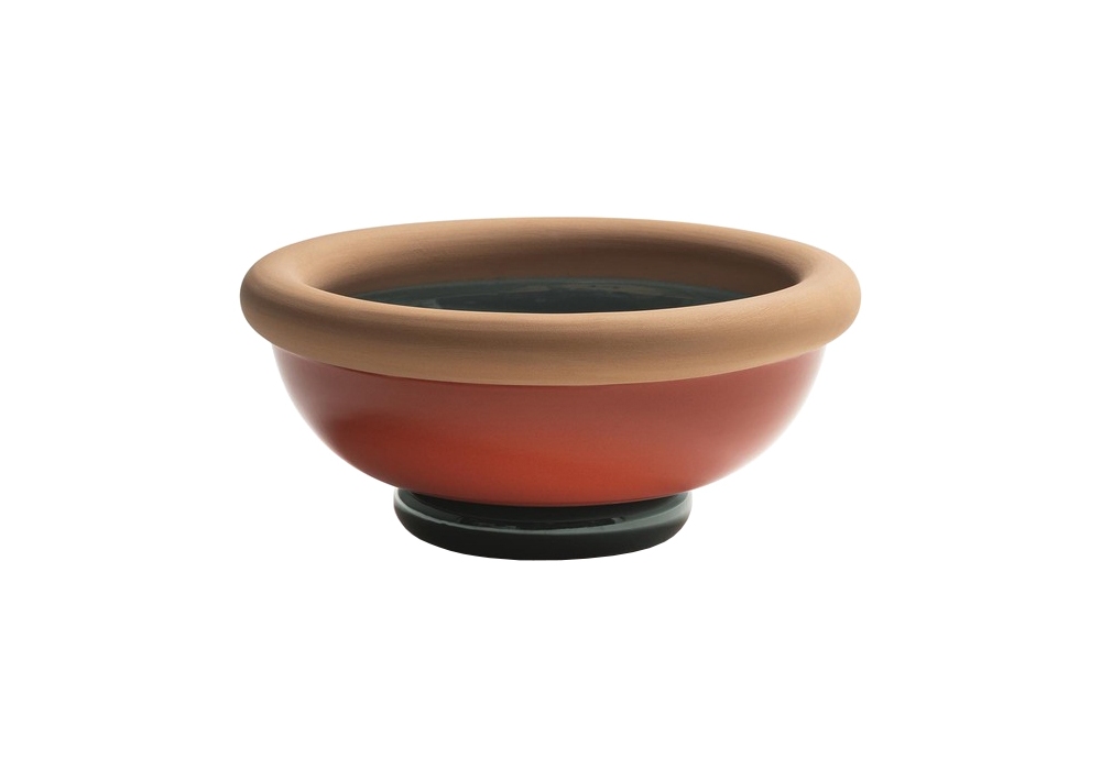 Ikiperu designed by Kristine Five Melvær for Poltrona Frayu is an hand-painted ceramic cup. It consists of horizontal bands whose finishes combine colored glazed ceramic and unglazed ceramic. The Ikiperu cup is available in two color combinations, inspired by Pelle Frau® leather shades.