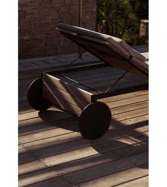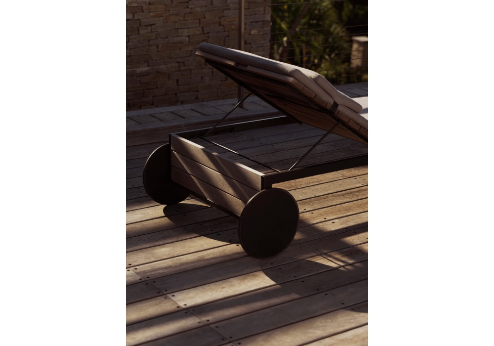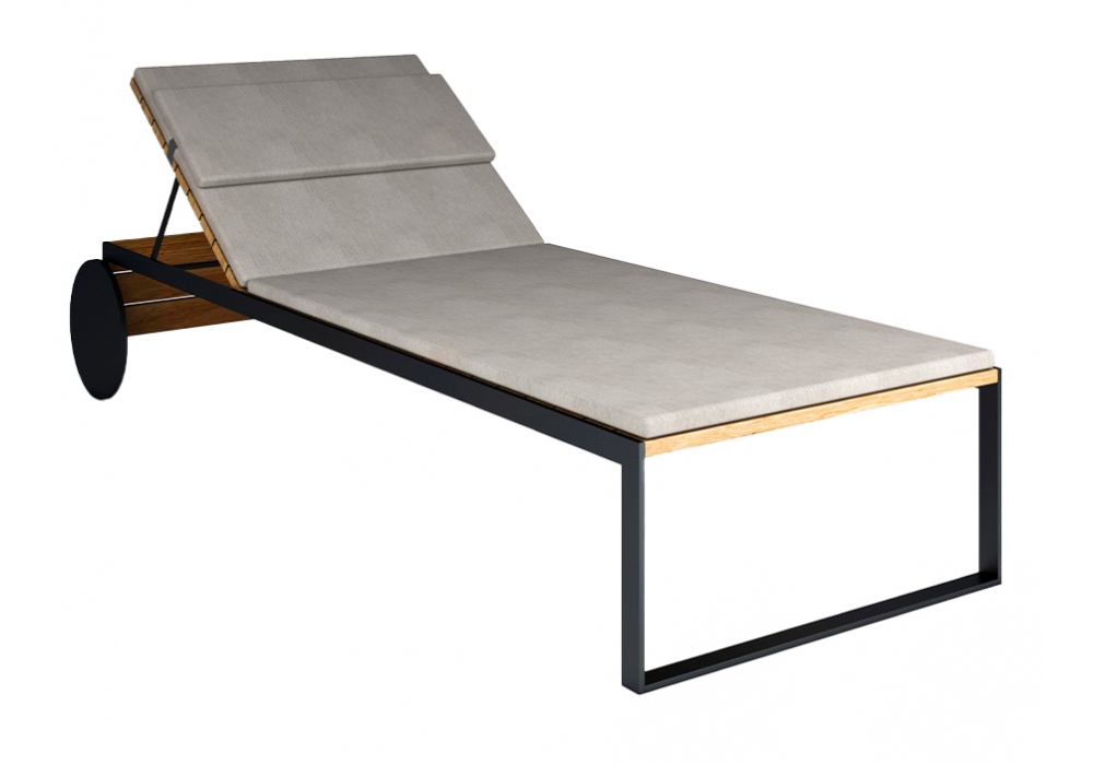 Garden Lounger designed by Broberg & Ridderstråle for Röshults is a sunlounger with structure in anthracite stainless steel and Teak. As an accessory it is possible to add a cushion in different upholstery.