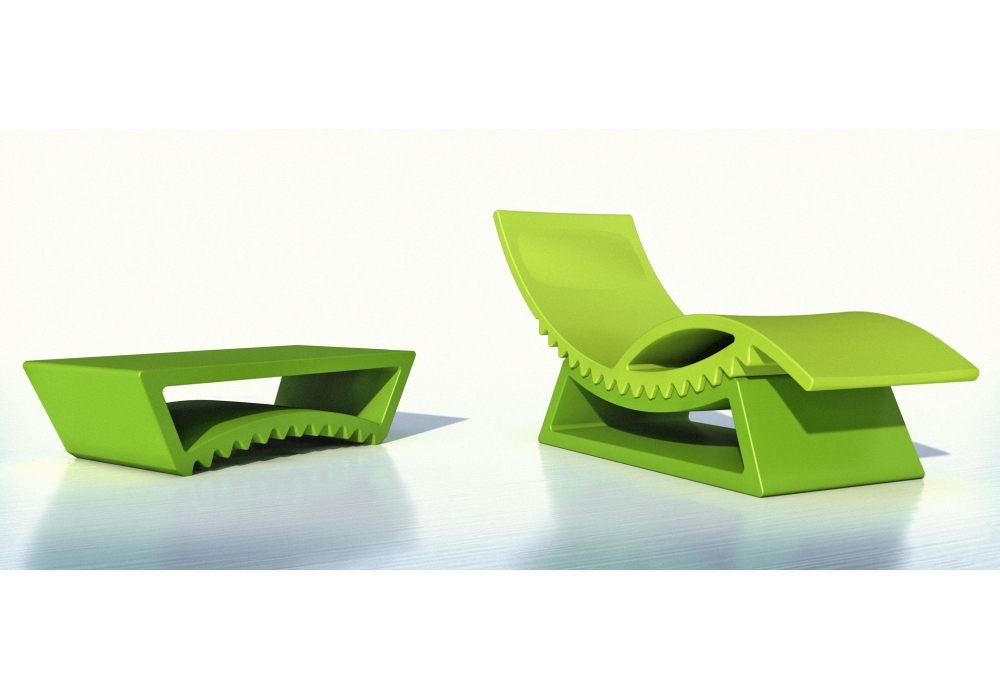 Tic Tac designed by Marco Acerbis for Slide is a chaise lounge made of polyethylene by means of the rotational moulding system. Tic Tac has a slight and clean design that plays with alternating solid/void and geometrical curves and lines and is composed by two distinct parts, the TIC chair and the TAC table, that can also be used separately. The two parts are joint together by an outline that recalls a gear and allows to adjust the tilt. It’s suitable for indoor and outdoor use. Available in different finishes.