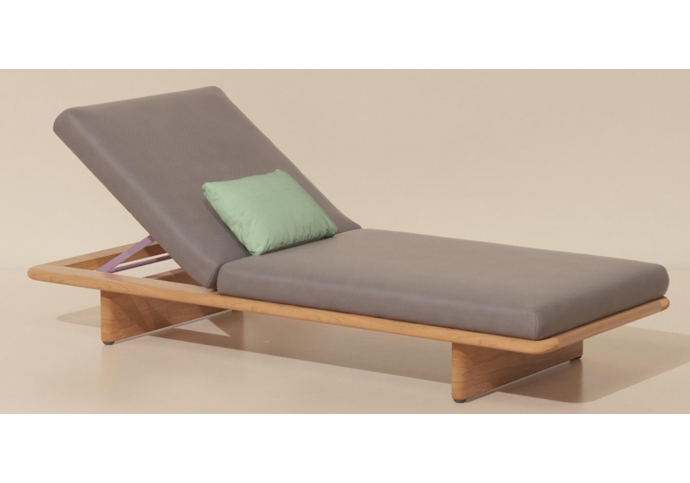 Mesh designed by Patricia Urquiola for Kettal is an outdoor lounger made with a teak wood frame and painted metal. The cushions are padded and covered in fabric. Mesh is available in different finishes and sizes.