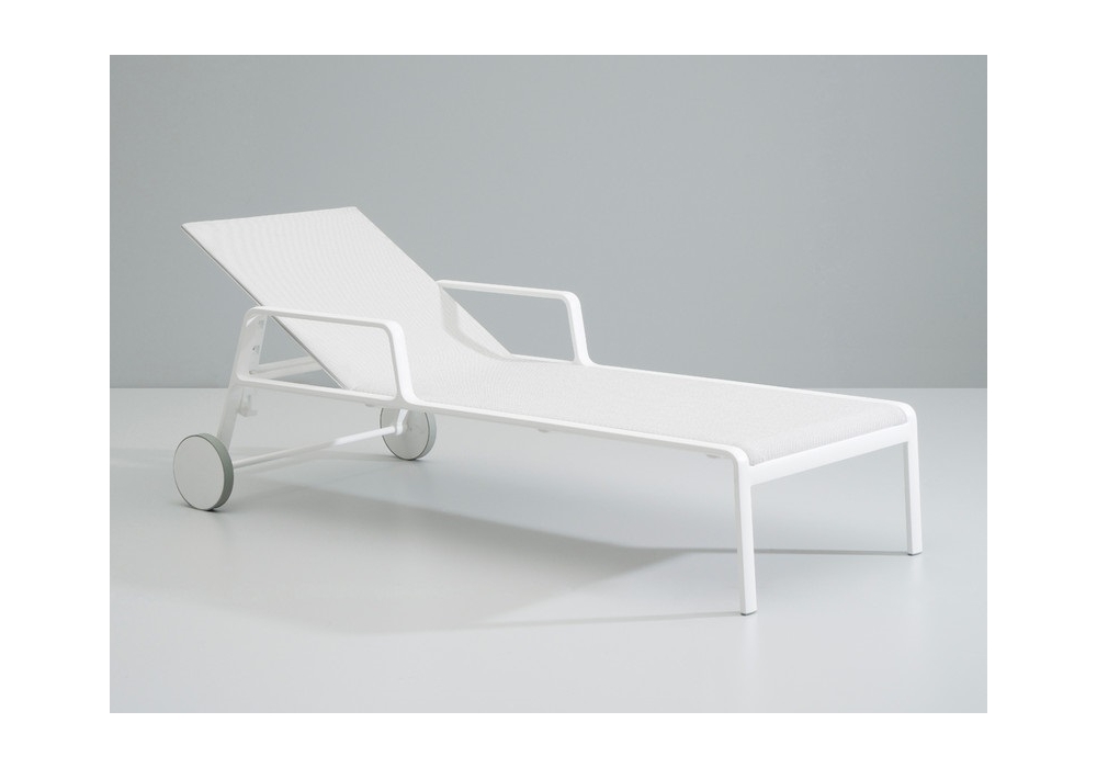 Park Life designed by Jasper Morrison for Kettal is an outdoor lounger with a painted aluminum frame and fabric shell. The cushions are padded and covered in fabric for outdoor use. Park Life is available in different frame and fabric finishes.