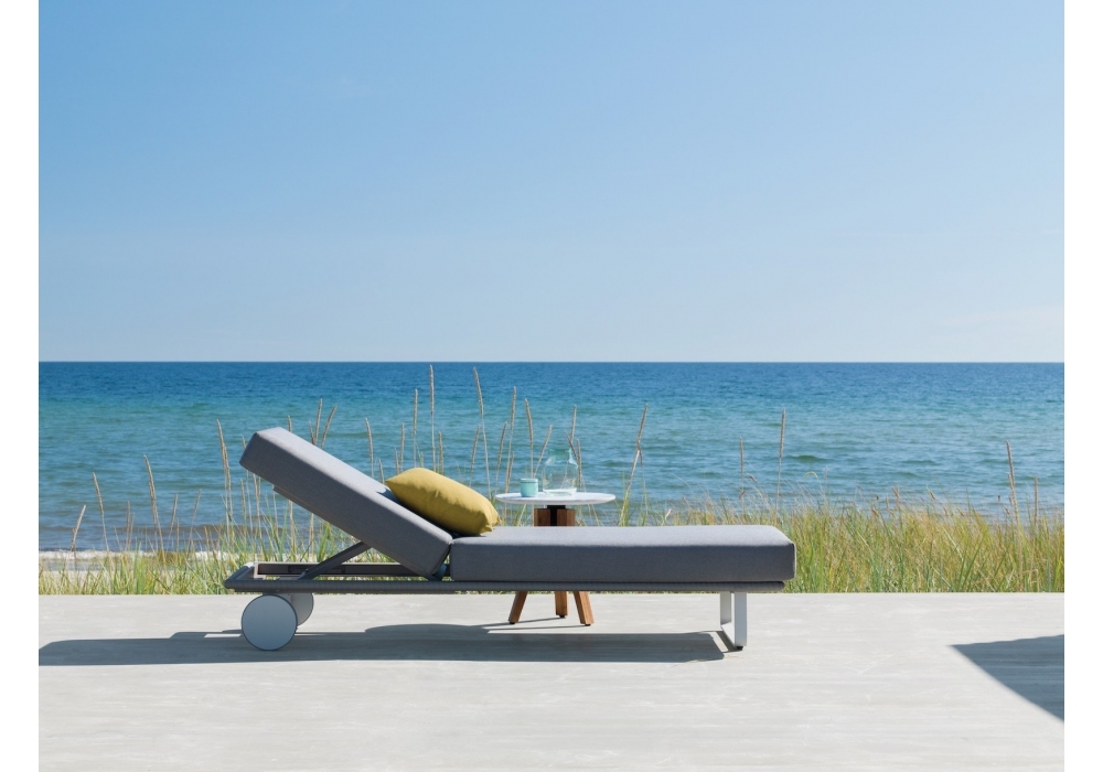 Bitta designed by Rodolfo Dordoni for Kettal is a sunbed with a painted aluminum structure. The body is entirely covered in synthetic canvas with padded cushions and covered in fabric suitable for outdoor use. Bitta is available in different finishes and versions.