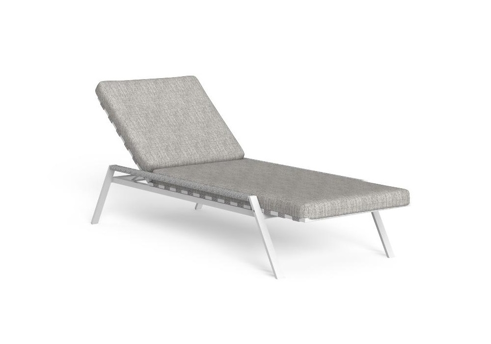 Cottage is a sun lounger designed by Ramón Esteve for Talenti. Powder-coated aluminum structure available in different variants, supported by synthetic elastic straps. Removable cushions, easy to wash and weather resistant.